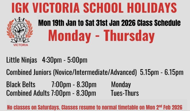 January 2026 School Holiday Class Schedule